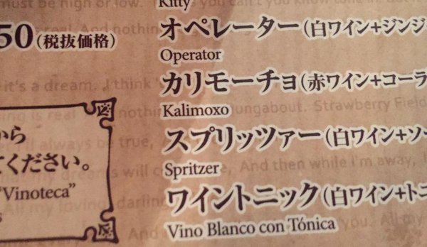 Bueno", Shibuya (Japan) You can find kalimotxo in this Spanish Bar in Japan. |